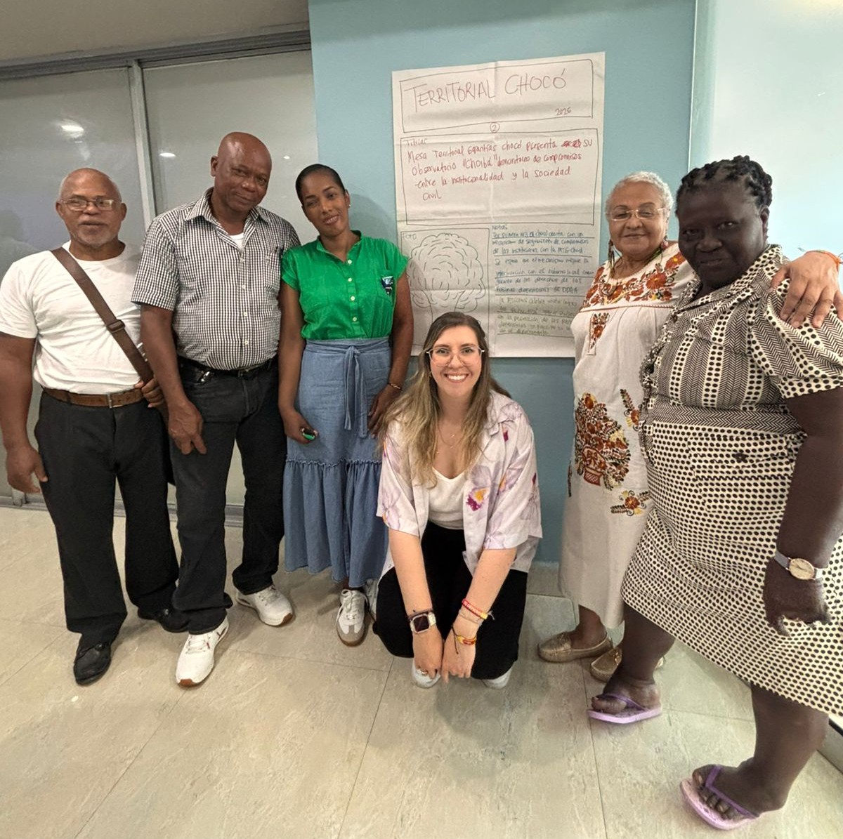 En octubre, dos delegadas de la Comisión Colombiana de Juristas estuvieron en Chocó para acompañar a personas defensoras, liderazgos y organizaciones sociales que buscan exigir condiciones seguras y favorables para su labor, en la construcción de indicadores para el seguimiento a compromisos estatales. El objetivo de los espacios era traducir sus demandas a un lenguaje que comprometa a las autoridades nacionales y territoriales y llame la atención de la comunidad internacional para recibir su apoyo. La actividad se realizó con apoyo del Instituto Danés de Derechos Humanos.
