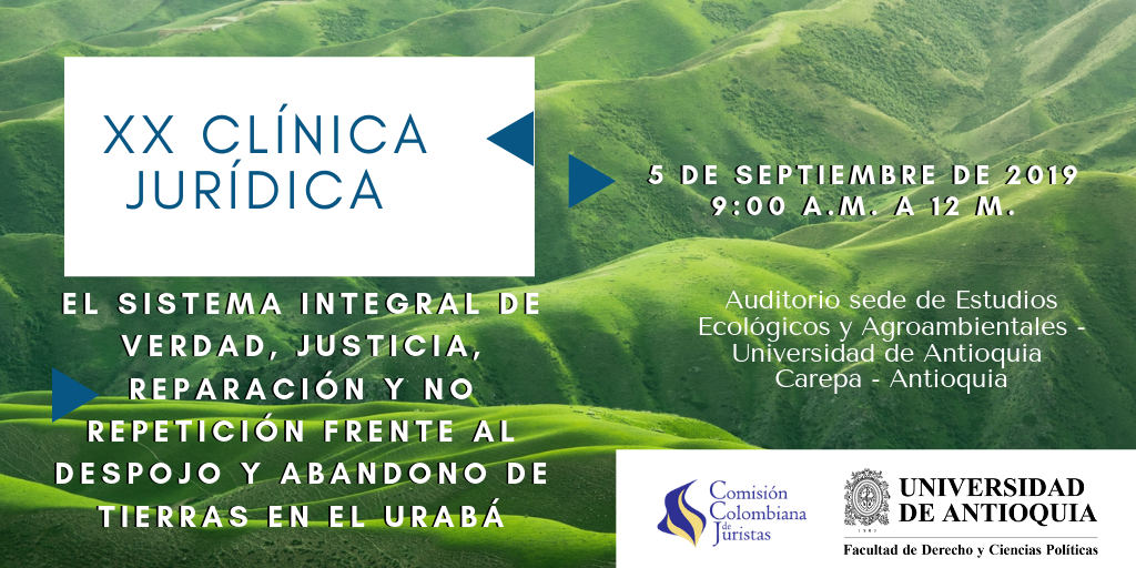 Para la vigésima edición de las clínicas jurídicas se discutirá sobre el rol del Sistema Integral de Verdad, Justicia, Reparación y No Repetición frente al fenómeno de despojo y abandono forzado de tierras en la región del Urabá. Es un hecho notorio que esta región ha sido una de las más afectadas por el conflicto armado y, en especial, por el despojo y abandono forzado de tierras. Por tal motivo, el mismo Sistema ha priorizado sus acciones en ella, tal como lo dispone el Auto No. 040 de 2018 de la Sala de Reconocimiento de Verdad, de Responsabilidad y de Determinación de los Hechos y las Conductas de la Jurisdicción Especial para la Paz (JEP). De esta manera, es esencial incentivar un diálogo entre los distintos componentes del sistema, la JEP, la Comisión para la Verdad (CEV) y la Unidad de Búsqueda de Personas Desaparecidas (UBPD), con las organizaciones de la sociedad civil, la academia, las entidades gubernamentales, las víctimas y la población en general, para conocer los planes de acción del Sistema para dar frente a las problemáticas de la región del Urabá y, en especial, lo relacionado al fenómeno de despojo y abandono forzado de tierras.