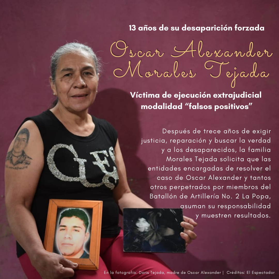 La familia de Óscar fue reconocida en 2018 como víctima en el caso 003 ante la Jurisdicción Especial para la Paz.