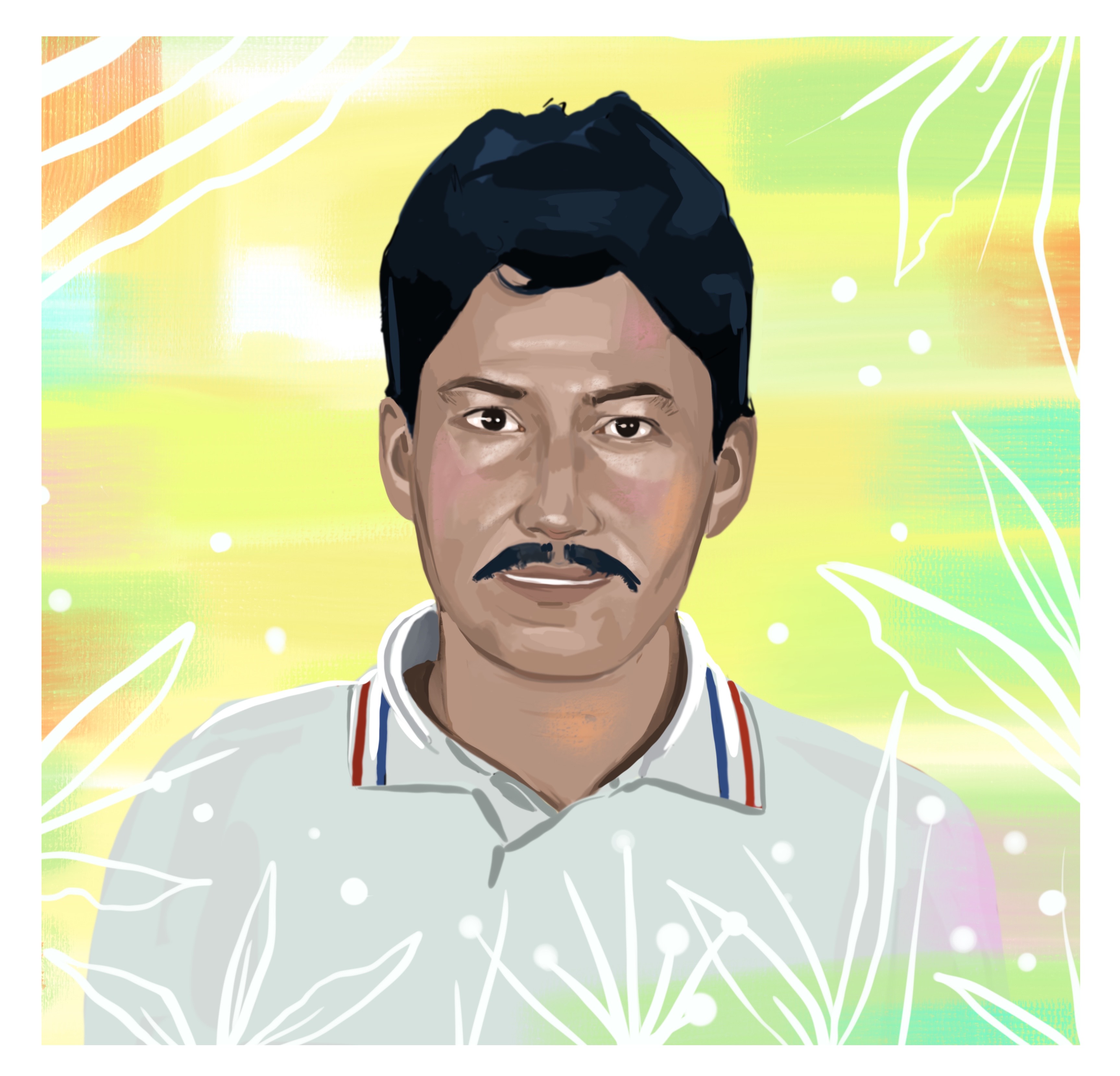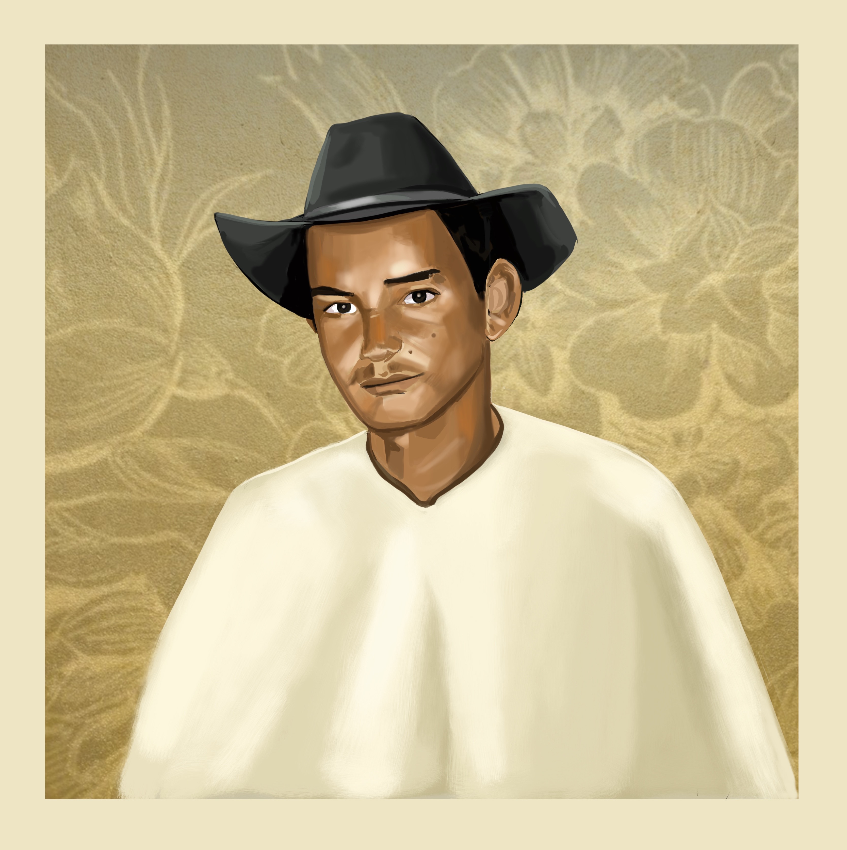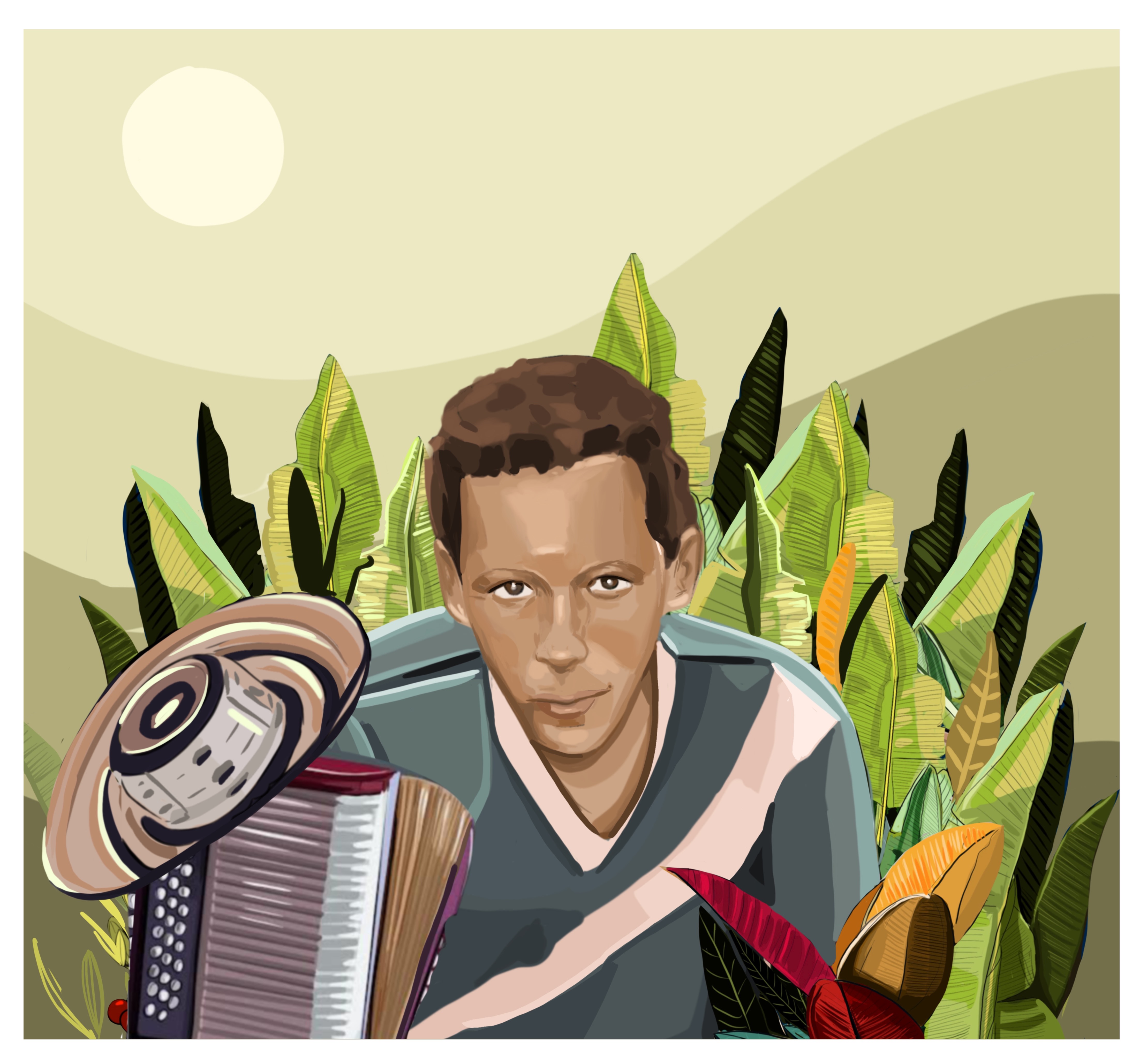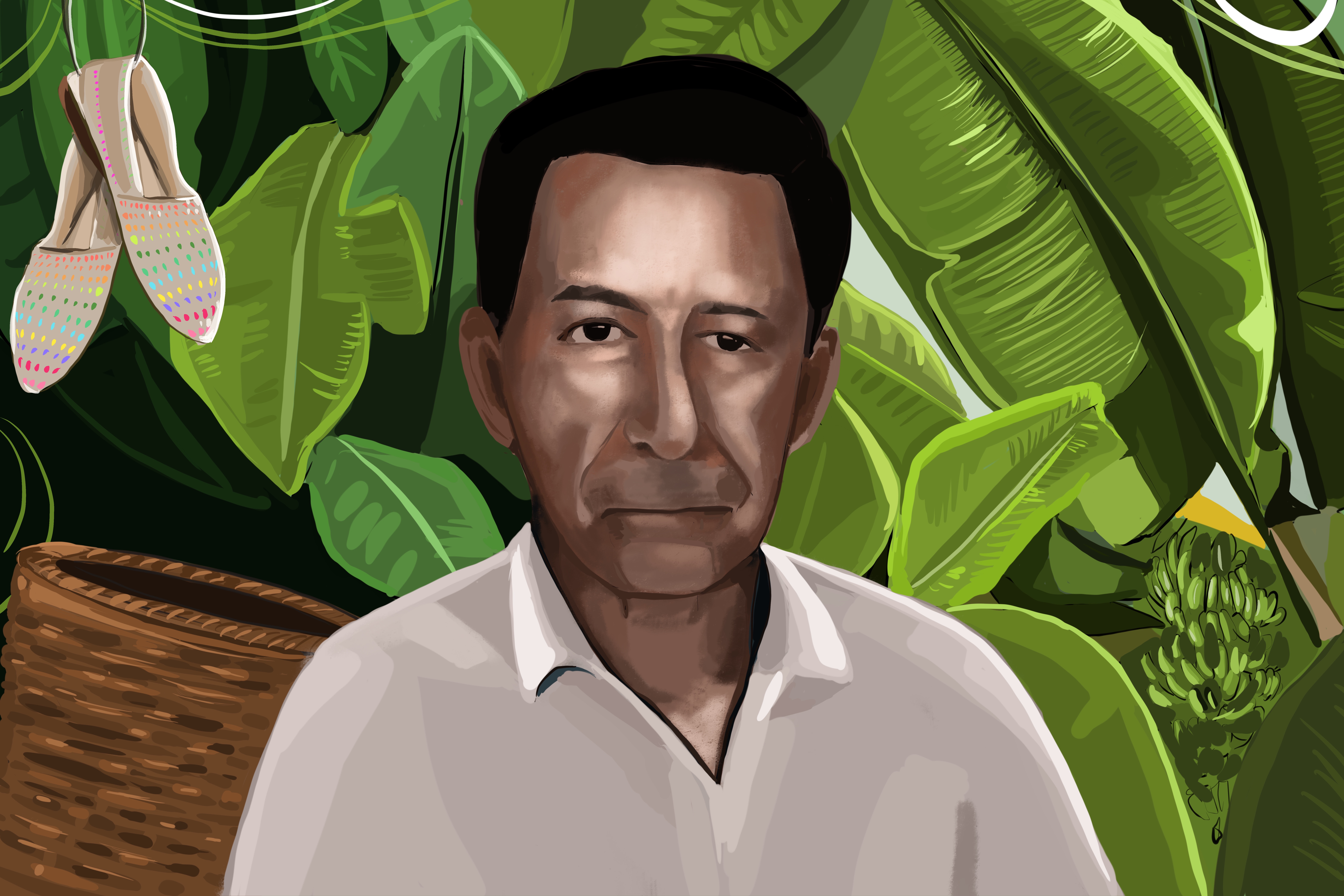 A Jhonny, campesino y líder comunitario, lo desaparecieron las extintas Farc-EP el 22 de noviembre de 2003. Su esposa e hija quisieron resaltar en esta ilustración su rol como presidente de la junta central de Yurilla, Putumayo. Además, quisieron plasmar algunas de las cosas que él más disfrutaba hacer: jugar fútbol y ajedrez.