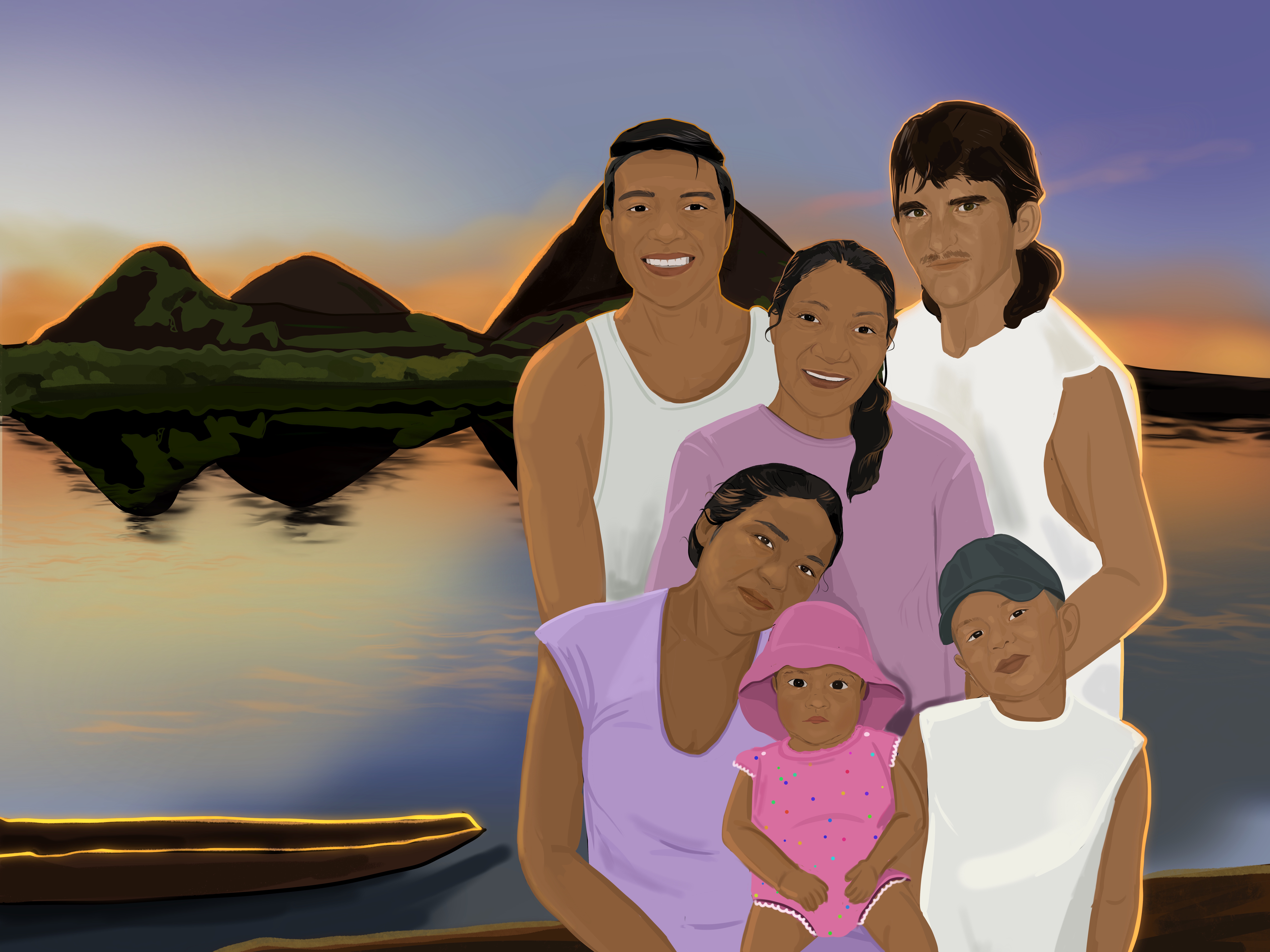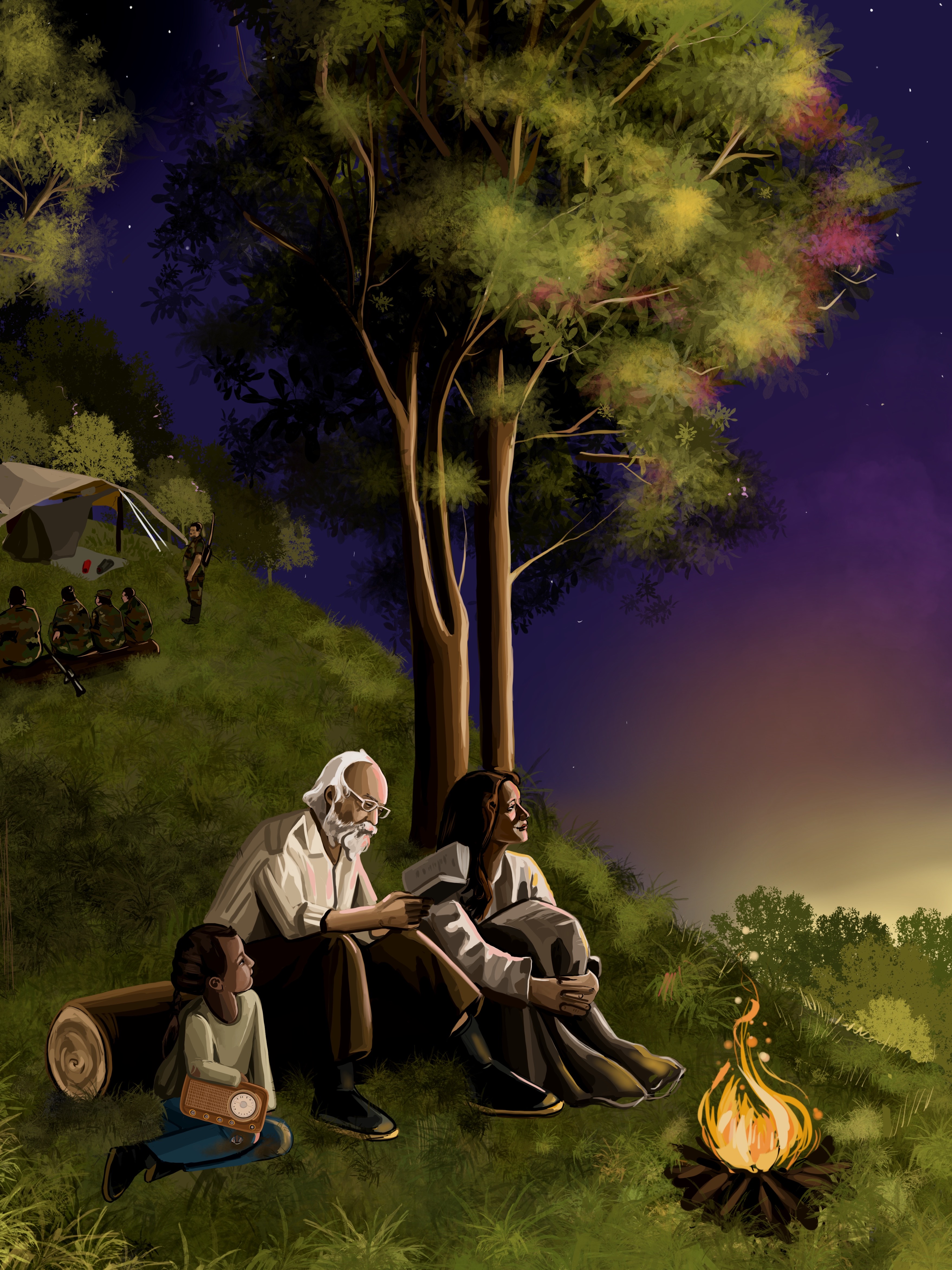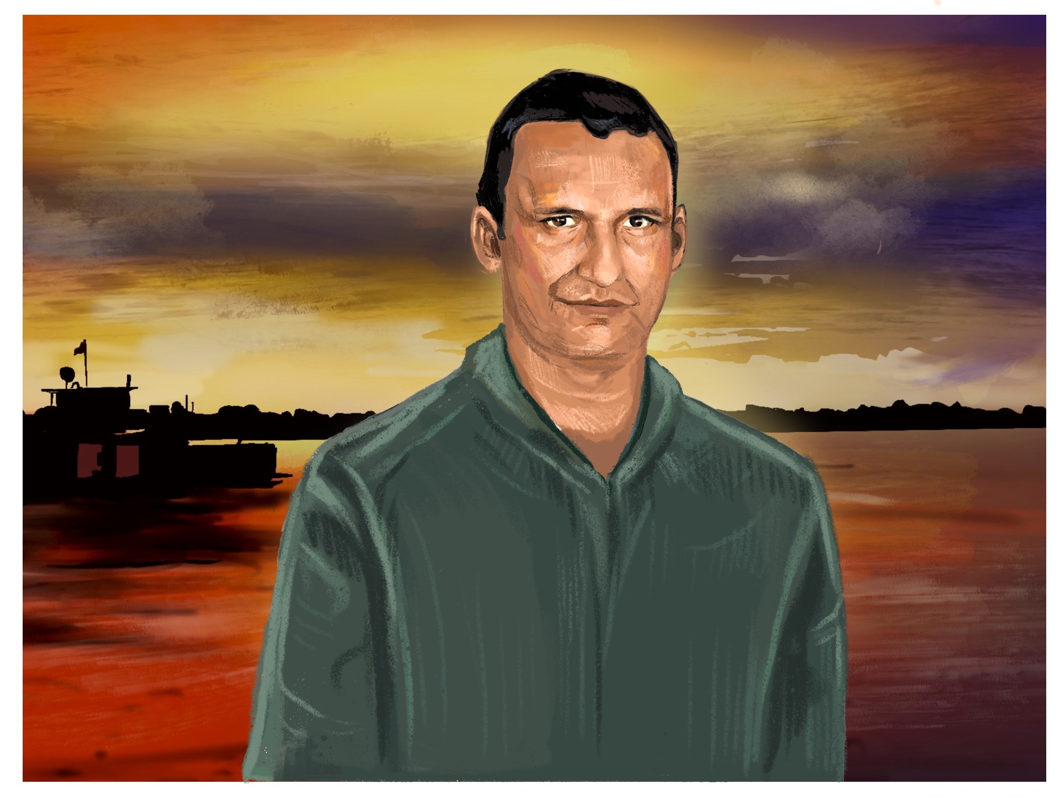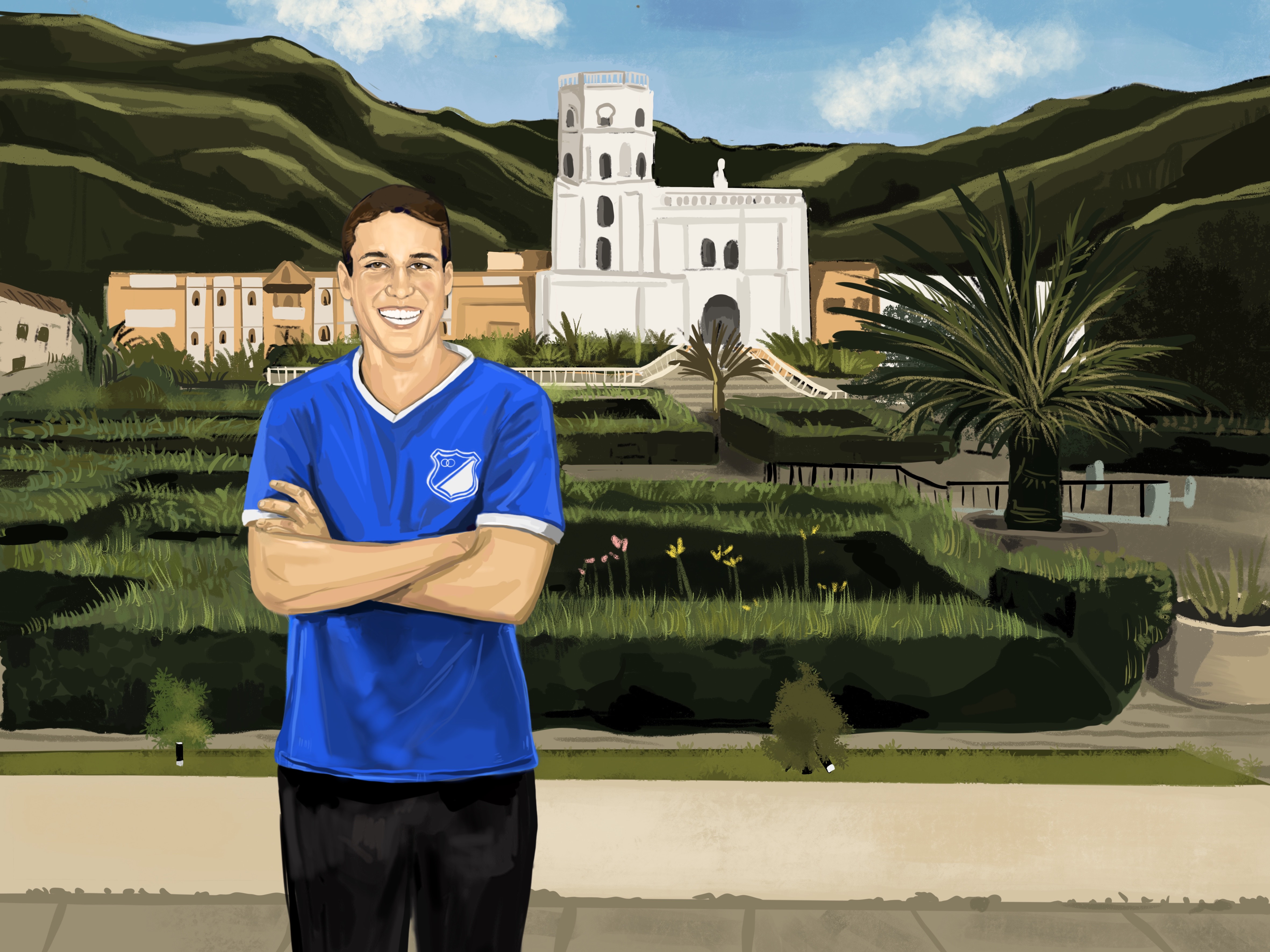 A Jhonny, campesino y líder comunitario, lo desaparecieron las extintas Farc-EP el 22 de noviembre de 2003. Su esposa e hija quisieron resaltar en esta ilustración su rol como presidente de la junta central de Yurilla, Putumayo. Además, quisieron plasmar algunas de las cosas que él más disfrutaba hacer: jugar fútbol y ajedrez.