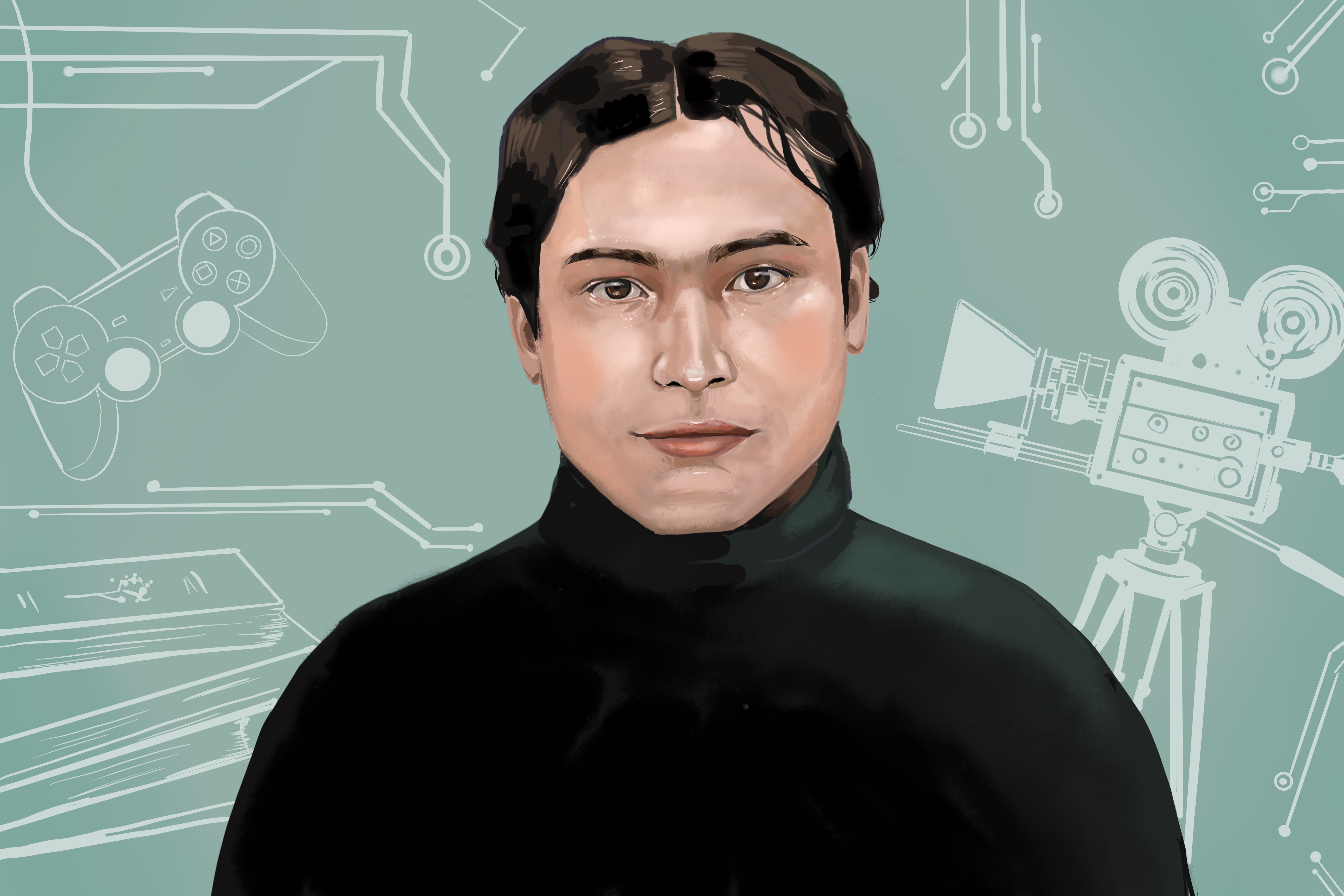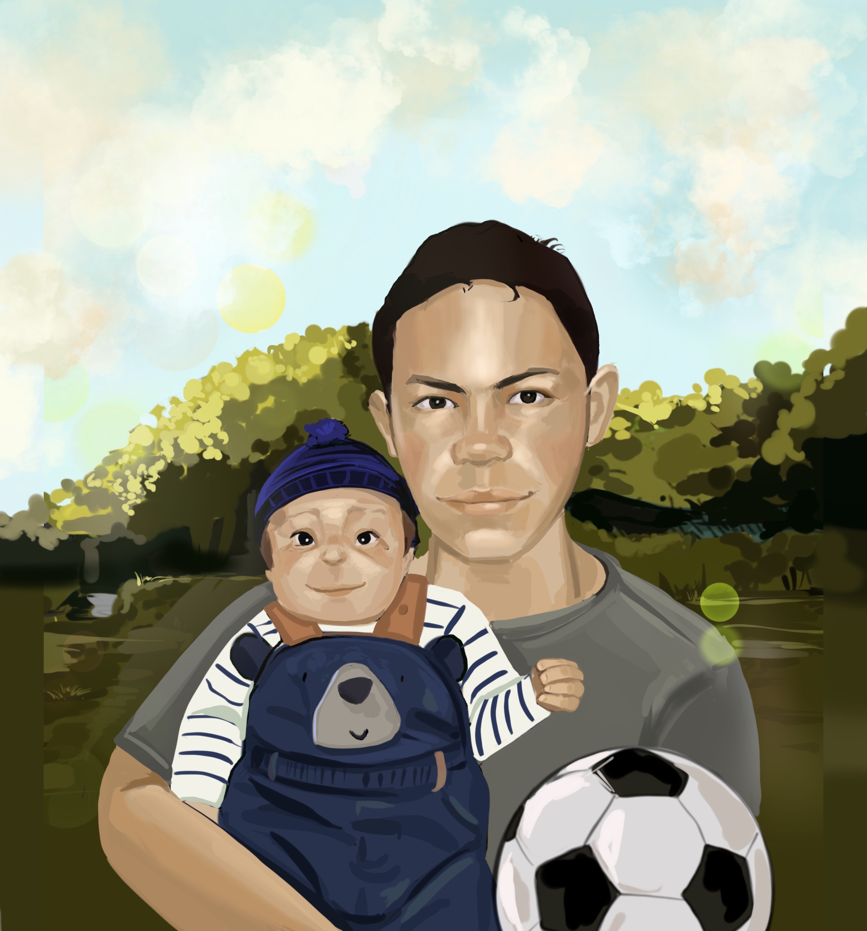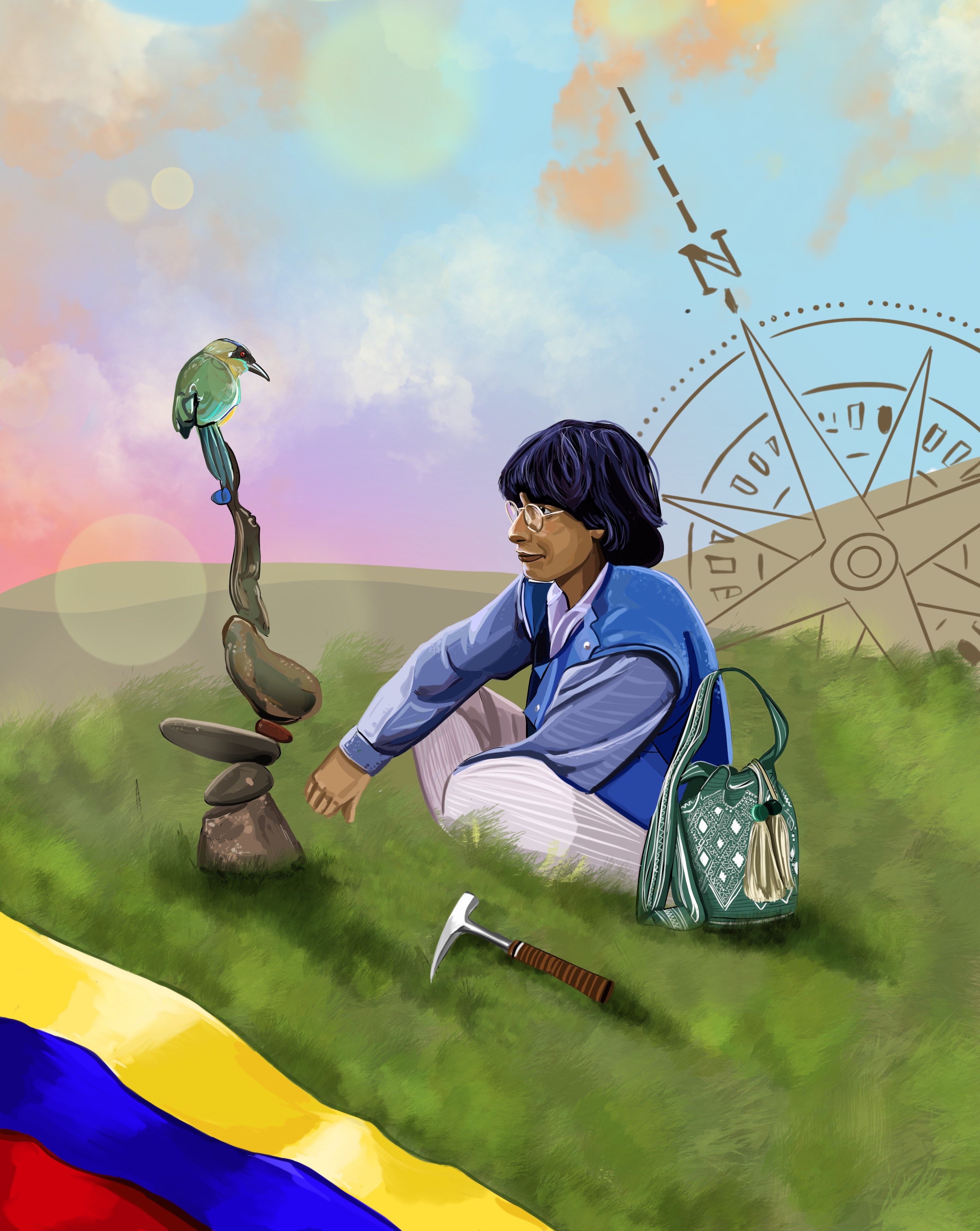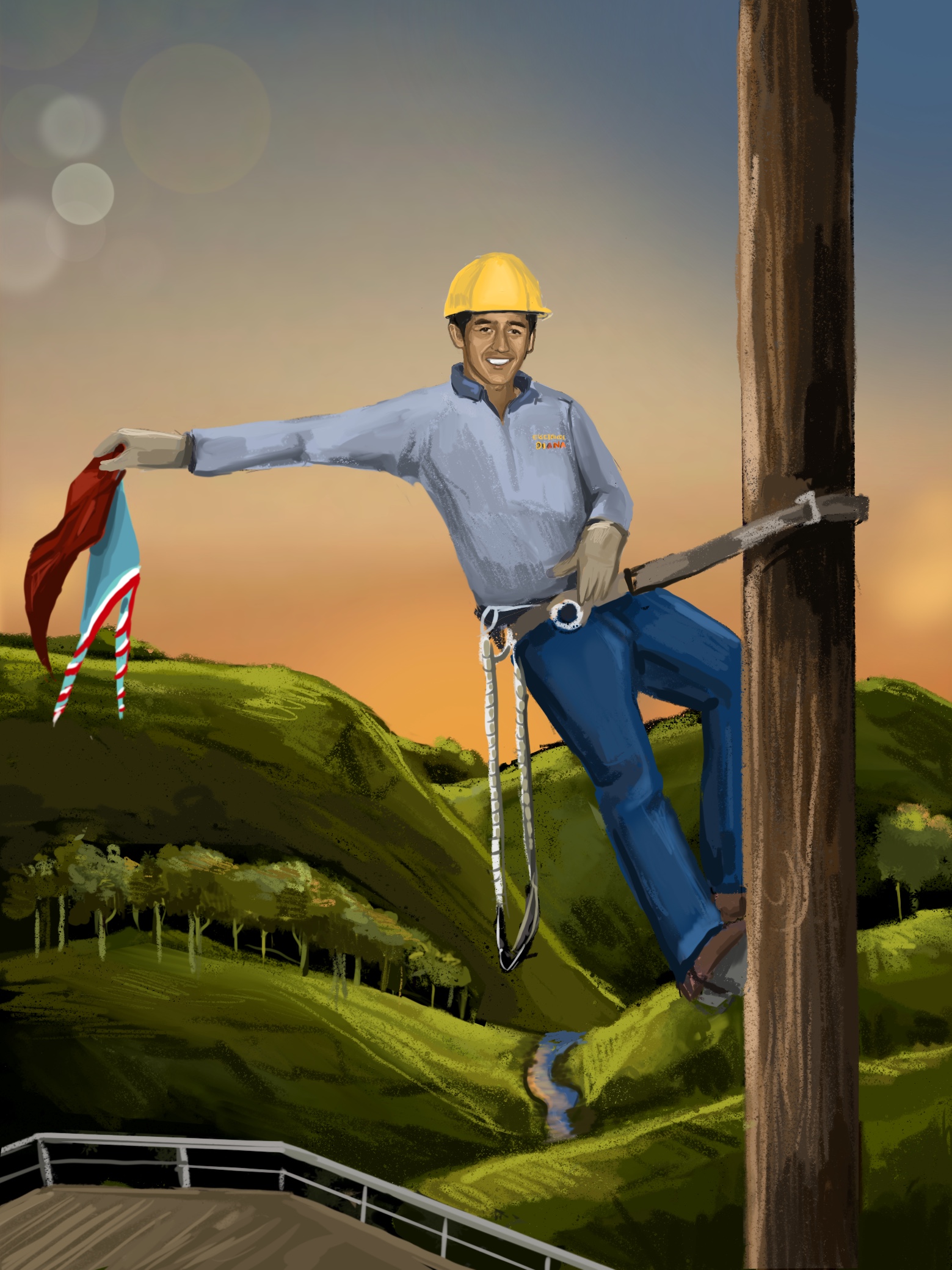 A Jhonny, campesino y líder comunitario, lo desaparecieron las extintas Farc-EP el 22 de noviembre de 2003. Su esposa e hija quisieron resaltar en esta ilustración su rol como presidente de la junta central de Yurilla, Putumayo. Además, quisieron plasmar algunas de las cosas que él más disfrutaba hacer: jugar fútbol y ajedrez.