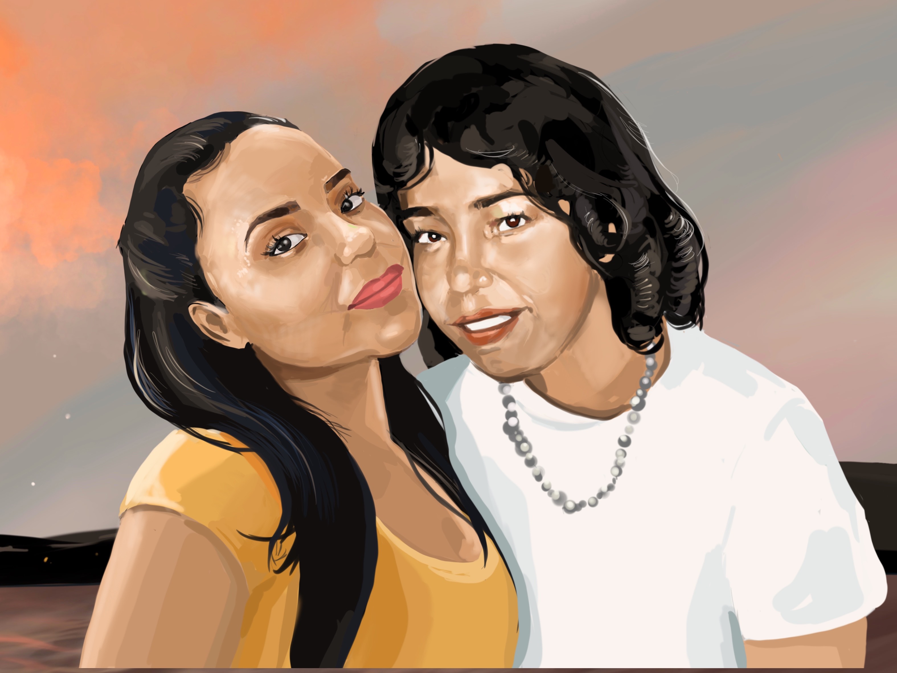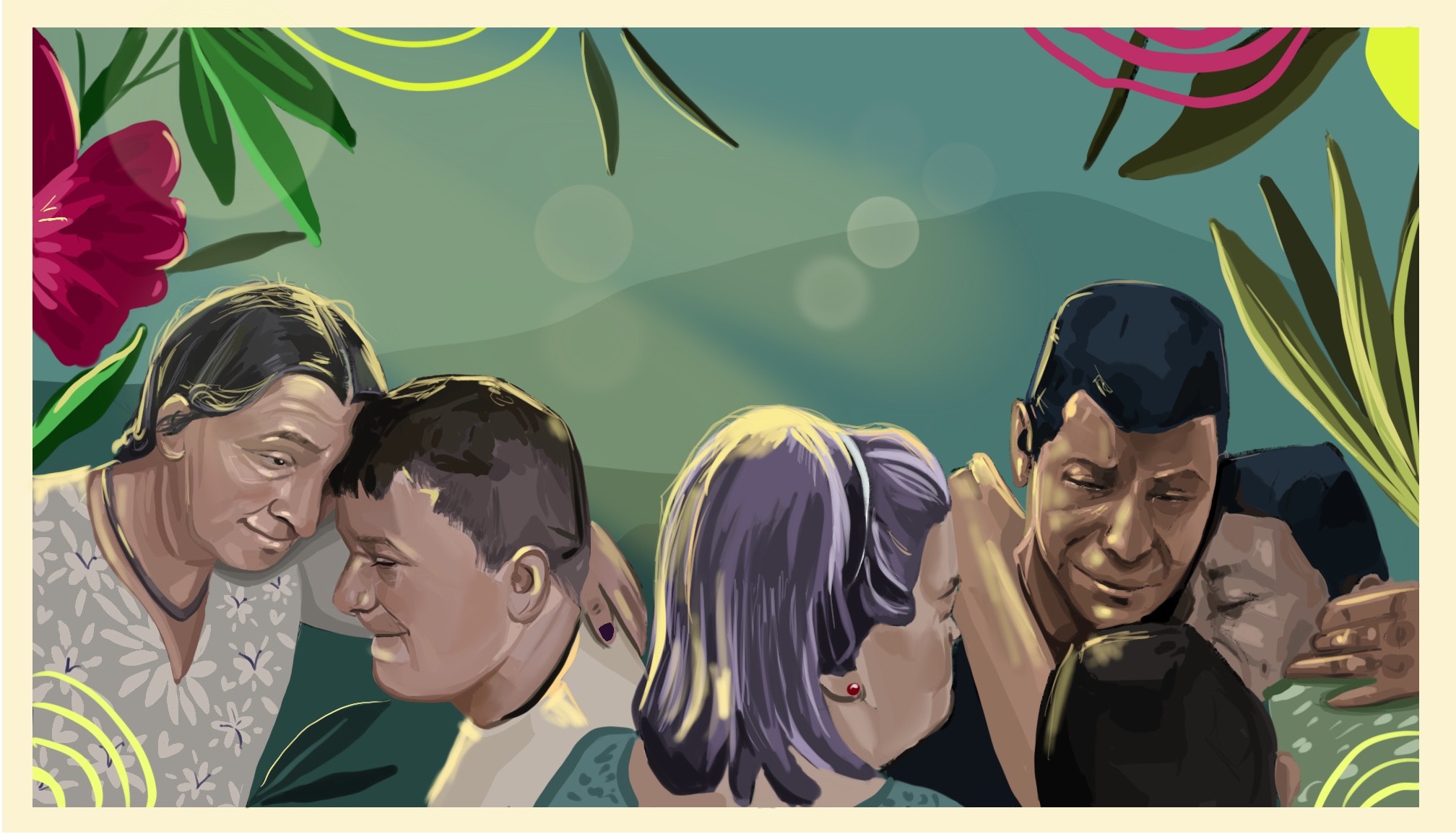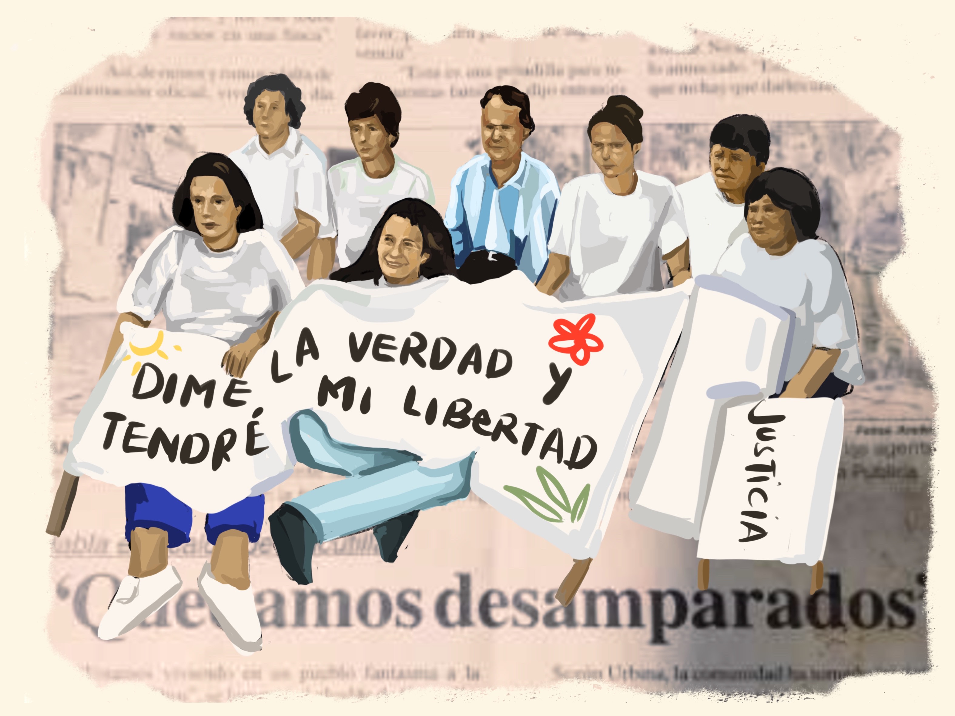 En la ilustración están Patricia (lado derecho) y su hija Eliana (lado izquierdo). Patricia es recordada como una mujer trabajadora y muy sonriente. Cuando las antiguas Farc la secuestraron tenía 32 años y ocho meses de embarazo.